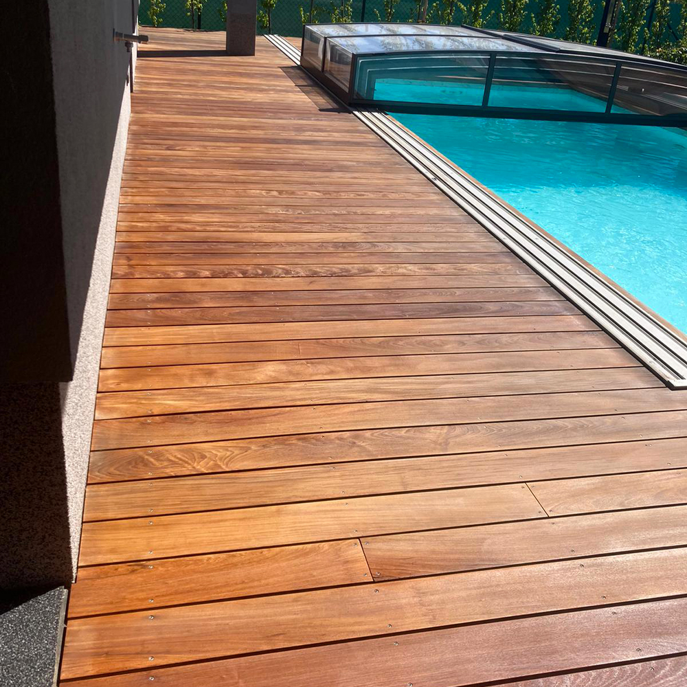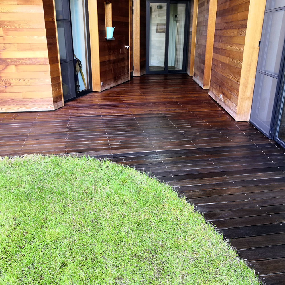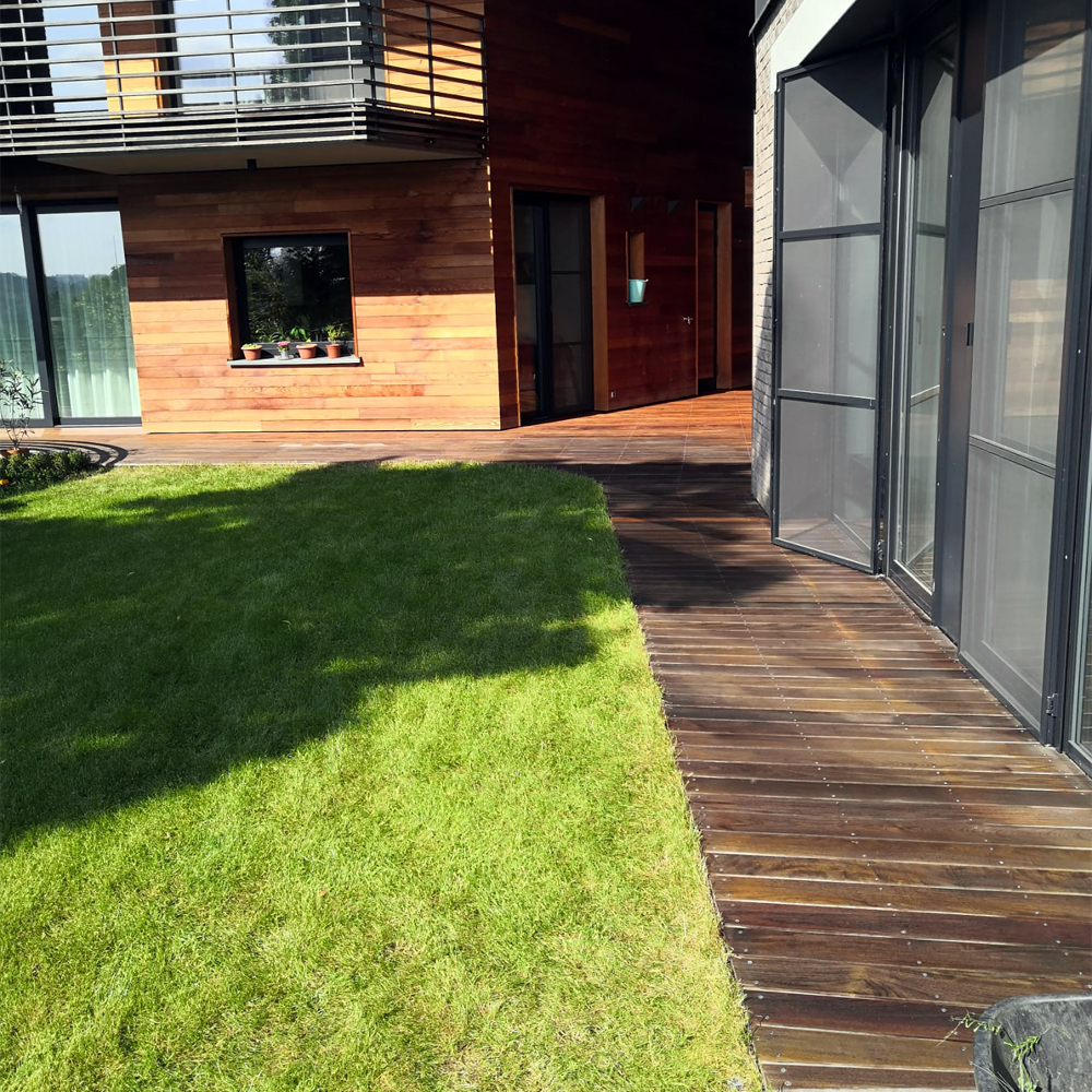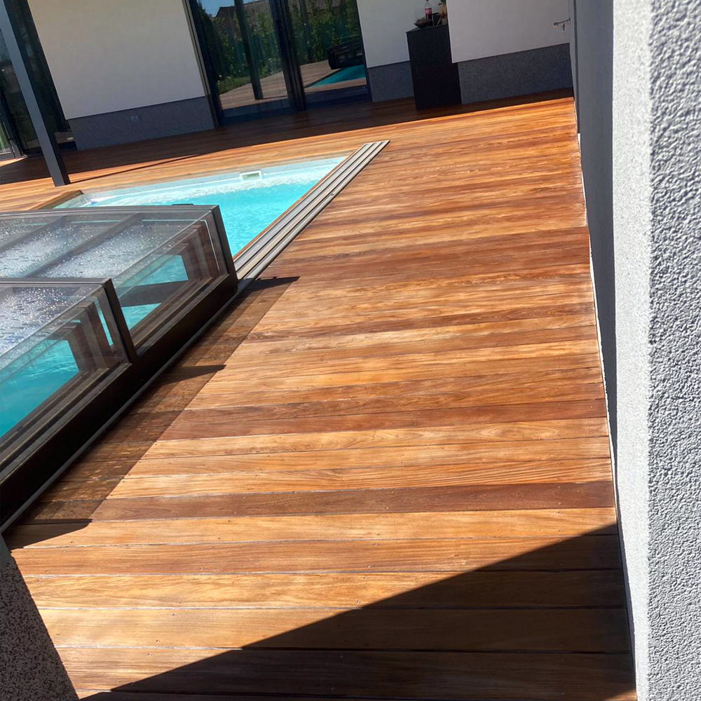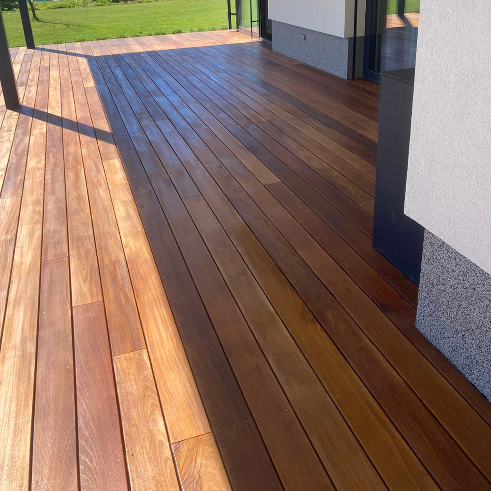 Pracujeme pouze s ověřenými a kvalitními materiály, které mají výborné vlastnosti do venkovního prostředí. Vyrábíme dřevěné terasy na míru s důrazem na estetiku, odolnost i dlouhou životnost. Specializujeme se na pokládku teras z tropických dřevin, jako jsou Massaranduba, Garapa, Cumaru, IPE nebo Teak – všechny vynikají výjimečnou tvrdostí, stabilitou a jedinečným vzhledem. Z evropských dřevin nejčastěji pracujeme se sibiřským modřínem a impregnovanou borovicí, které představují osvědčenou klasiku s přirozeným rustikálním charakterem. Každý materiál vybíráme pečlivě s ohledem na účel použití, přání zákazníka i konkrétní podmínky na místě realizace.
