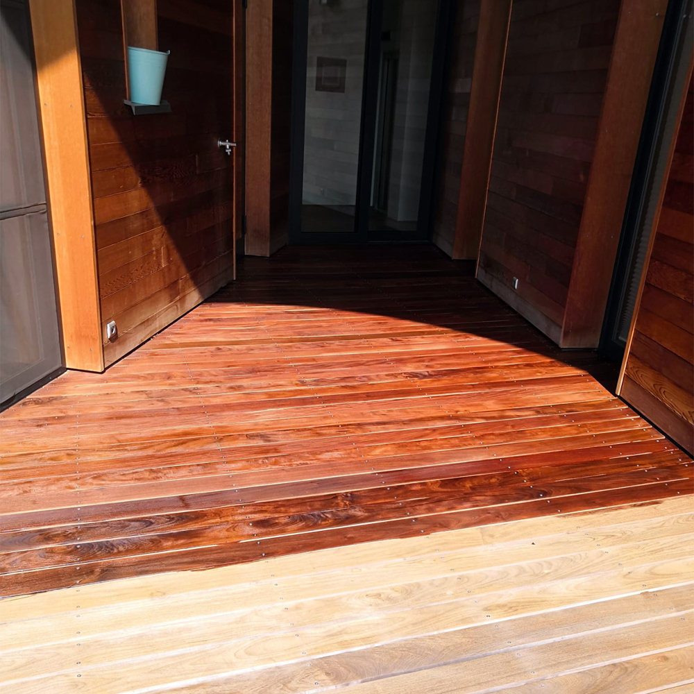 IPE je prémiová volba mezi terasovými dřevinami. Nabízí špičkovou hustotu, tvrdost a dlouhou životnost – bez kompromisů. Má elegantní tmavě hnědou barvu, hladký povrch a téměř nulovou nasákavost. Terasa z IPE je nejen krásná, ale i extrémně odolná, vhodná i pro nejnáročnější klimatické podmínky.