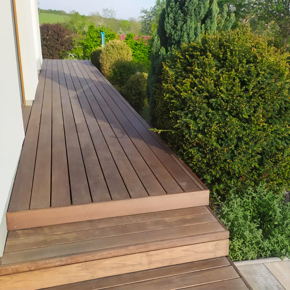 Používáme pouze osvědčené dřeviny s vysokou odolností vůči počasí, hnilobě i opotřebení – terasa tak vydrží roky.