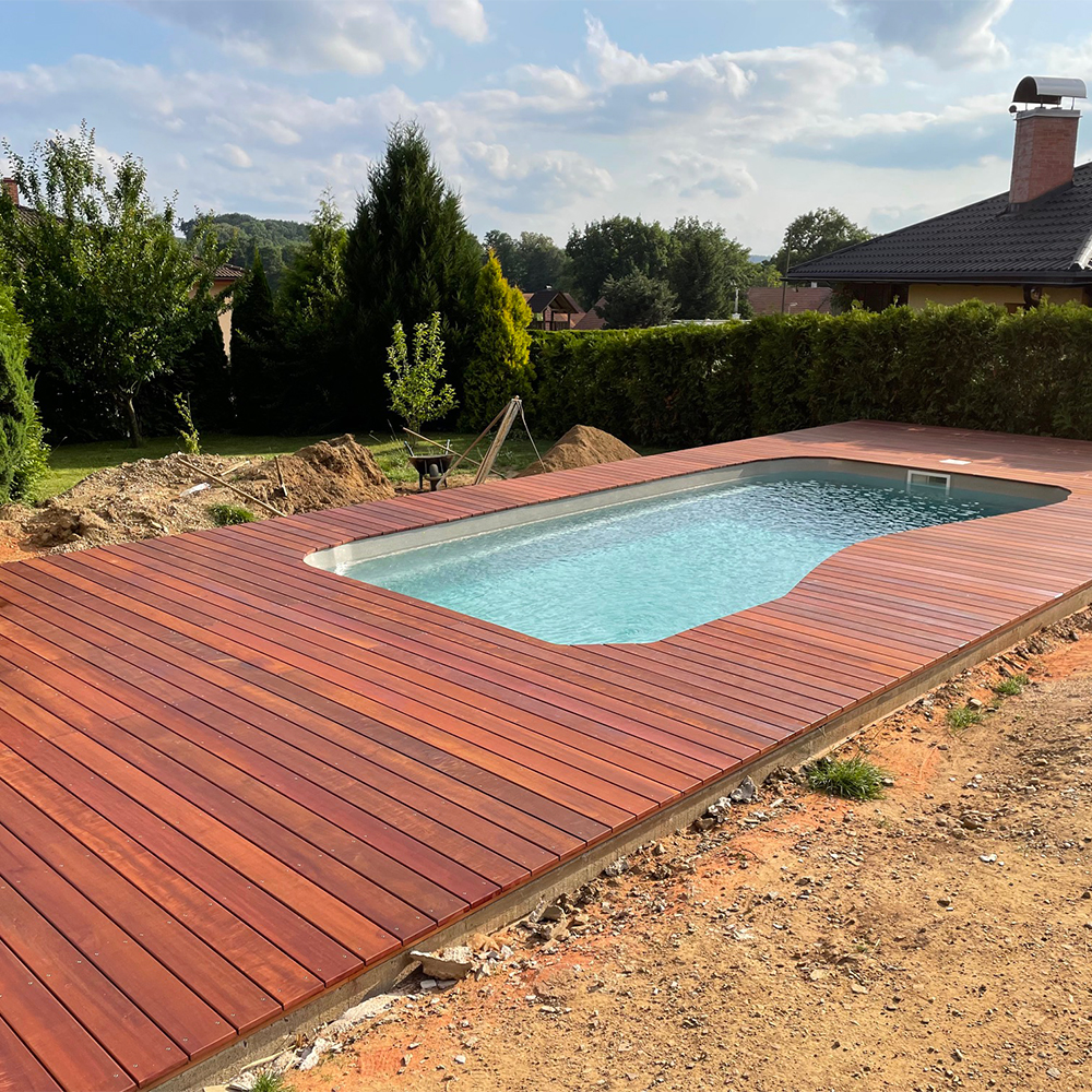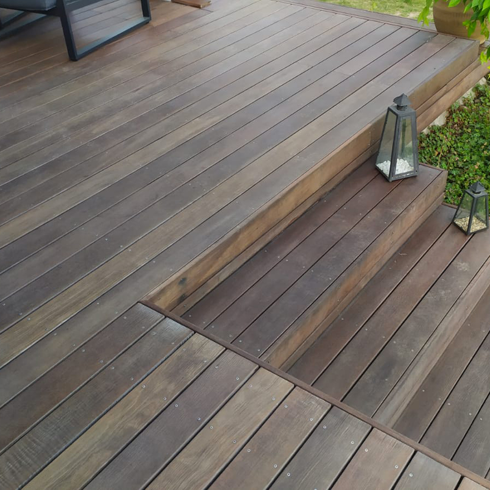 Pracujeme pouze s ověřenými a kvalitními materiály, které mají výborné vlastnosti do venkovního prostředí. Vyrábíme dřevěné terasy na míru s důrazem na estetiku, odolnost i dlouhou životnost. Specializujeme se na pokládku teras z tropických dřevin, jako jsou Massaranduba, Garapa, Cumaru, IPE nebo Teak – všechny vynikají výjimečnou tvrdostí, stabilitou a jedinečným vzhledem. Z evropských dřevin nejčastěji pracujeme se sibiřským modřínem a impregnovanou borovicí, které představují osvědčenou klasiku s přirozeným rustikálním charakterem. Každý materiál vybíráme pečlivě s ohledem na účel použití, přání zákazníka i konkrétní podmínky na místě realizace.
