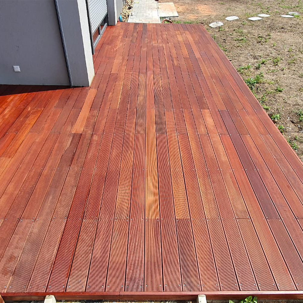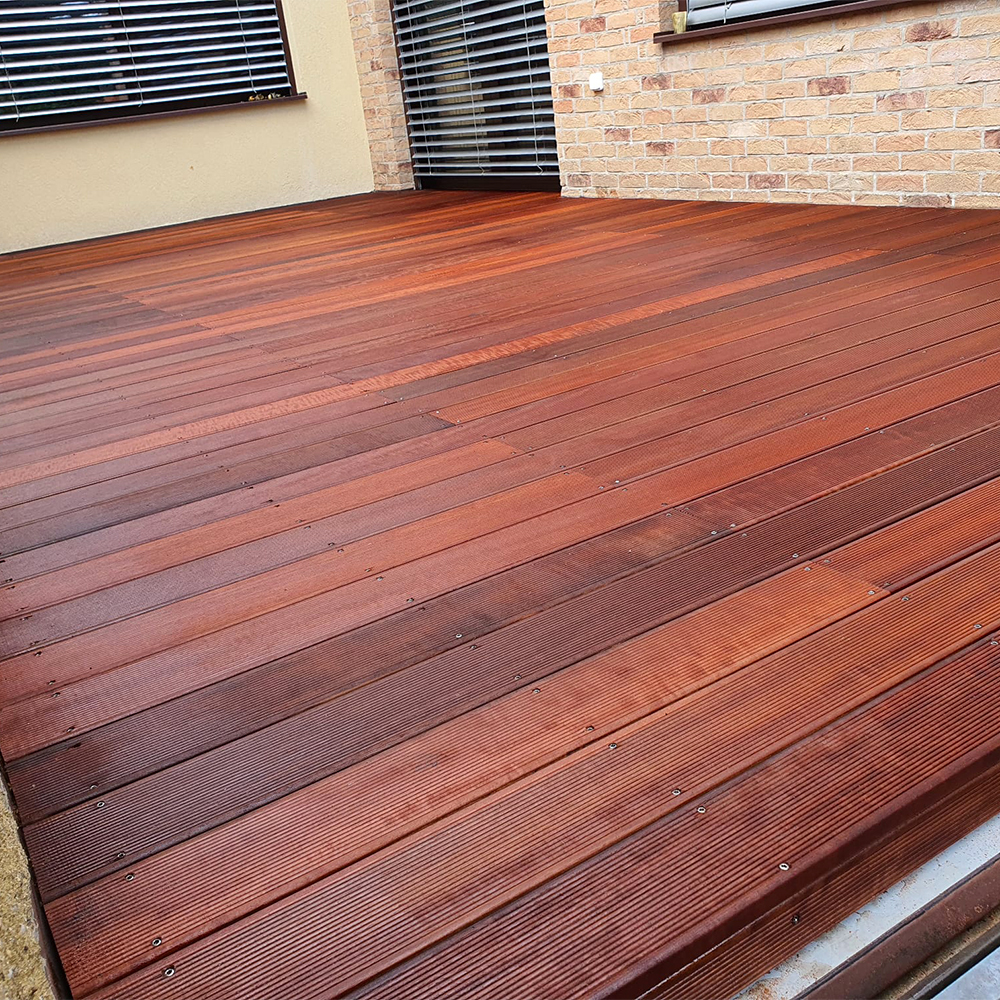 Jedna z nejtvrdších a nejodolnějších tropických dřevin na světě. Vyniká hlubokou červenohnědou barvou, dlouhou životností a minimální potřebou údržby. Ideální pro terasy, které budou dlouhodobě vystavené povětrnostním vlivům.