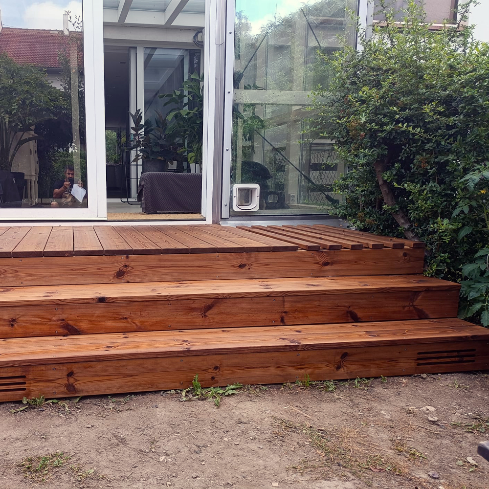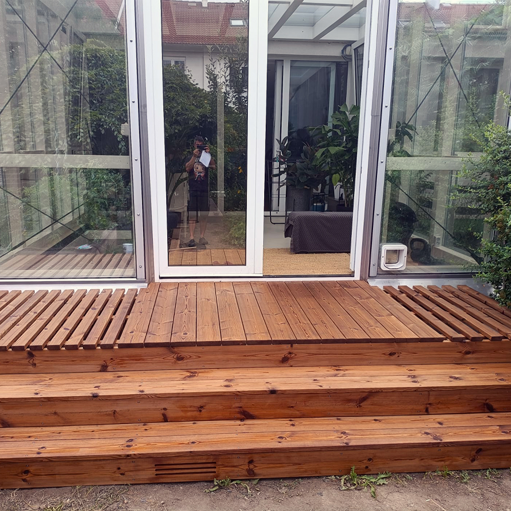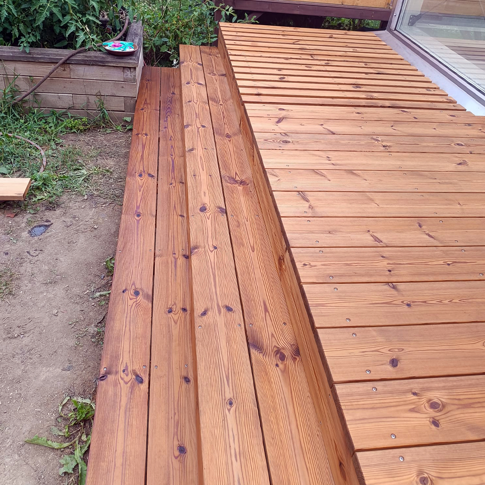 Pracujeme pouze s ověřenými a kvalitními materiály, které mají výborné vlastnosti do venkovního prostředí. Vyrábíme dřevěné terasy na míru s důrazem na estetiku, odolnost i dlouhou životnost. Specializujeme se na pokládku teras z tropických dřevin, jako jsou Massaranduba, Garapa, Cumaru, IPE nebo Teak – všechny vynikají výjimečnou tvrdostí, stabilitou a jedinečným vzhledem. Z evropských dřevin nejčastěji pracujeme se sibiřským modřínem a impregnovanou borovicí, které představují osvědčenou klasiku s přirozeným rustikálním charakterem. Každý materiál vybíráme pečlivě s ohledem na účel použití, přání zákazníka i konkrétní podmínky na místě realizace.